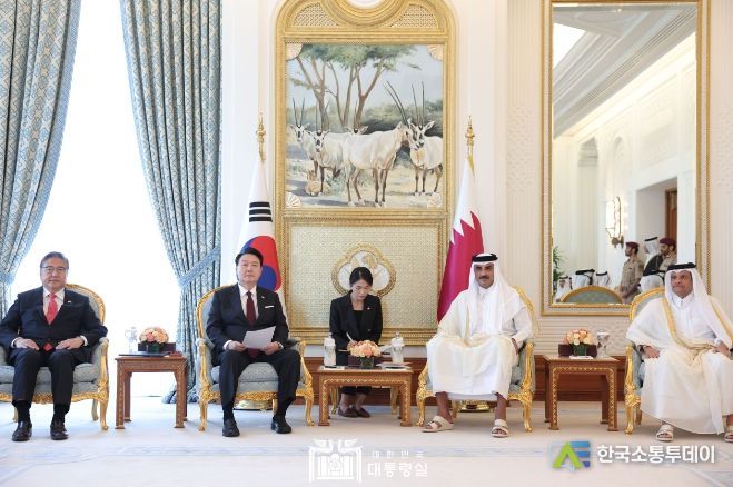 한국소통투데이 관리자 기자 | '타밈 빈 하마드 알 싸니(Tamim bin Hamad Al Thani), 이하 ‘타밈’' 카타르 국왕의 초청으로 카타르를 국빈 방문 중인 윤석열 대통령은 오늘(현지시간 10. 25. 수) 카타르 왕궁(‘아미리 디완’)에서 타밈 국왕과 정상회담을 가졌다.