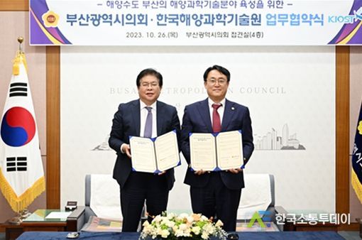 한국소통투데이 관리자 기자 | 부산광역시의회은 오늘(26일) 오후 13시30분, 시의회 접견실에서 한국해양과학기술원과 해양수도 부산의 해양과학기술분야 육성 등을 위한 업무협약을 체결했다.