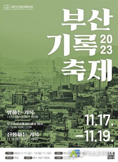 한국소통투데이 관리자 기자 | 부산근현대역사관은 부산 공공‧민간기록의 현주소를 확인하는 장(場)으로서 오는 11월 17일부터 19일까지 3일간 '2023 부산기록축제'를 개최한다고 밝혔다.