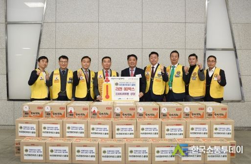 한국소통투데이 관리자 기자 | 부산광역시 남구에서는 지난 24일 아리랑 라이온스클럽 이동건 회장 등이 참석한 가운데 250만 원 상당의 라면(40개입) 80박스 전달식을 가졌다.