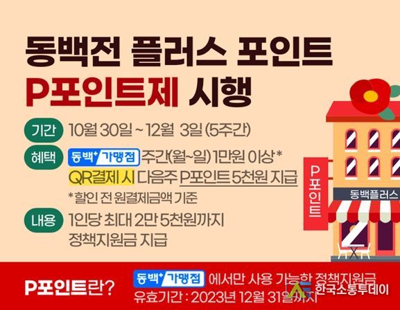 한국소통투데이 관리자 기자 | 부산시는 오늘(30일)부터 12월 3일까지 5주간 동백전 플러스 포인트제(P포인트제)를 시행한다고 밝혔다.