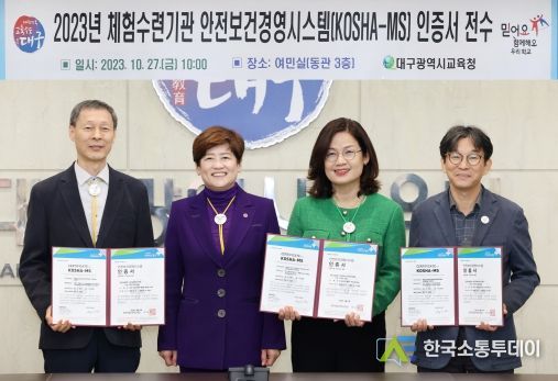 한국소통투데이 관리자 기자 | 대구시교육청은 2022년 시도교육청 최초로 한국산업안전보건공단으로부터 ‘안전보건경영시스템(KOSHA-MS)’인증을 획득한데 이어, 대구교육해양수련원 등 산하 체험ㆍ수련기관 3곳이 올해 추가로 인증을 획득했다고 30일 밝혔다.