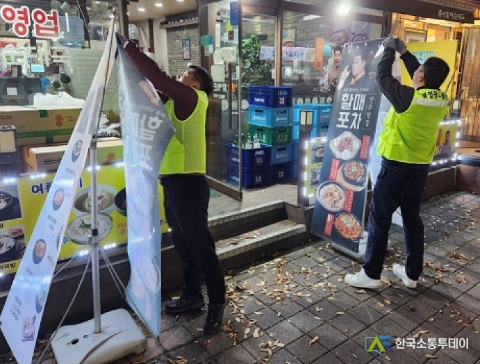 한국소통투데이 관리자 기자 | 수원시 권선구는 지난 26일 도로 인도변에 설치되어 시민 안전을 위협하며 도시 환경을 훼손하는 불법 유동광고물에 대해 경찰과 합동으로 야간단속을 실시했다.