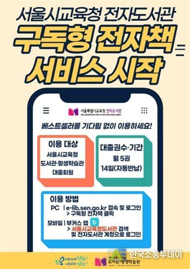 한국소통투데이 관리자 기자 | 서울특별시교육청은 책 읽는 문화 확산을 위해 서울시민이 언제 어디서든 이용할 수 있는 ‘구독형 전자책 서비스’를 11월부터 본격 시작한다.