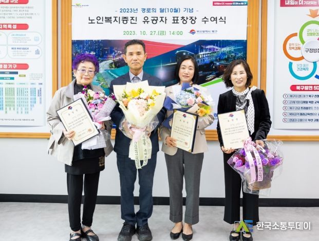 한국소통투데이 관리자 기자 | 부산 북구는 지난 27일 경로의 달(10월)을 기념하여 노인복지사업에 크게 기여한 유공자를 발굴하여 표창장을 수여했으며, 그간 취약 노인돌봄 및 노인복지 증진을 위해 힘쓴 유공자에 대한 감사와 격려의 마음을 전했다.