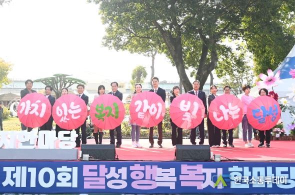 한편, 올해로 10회째를 맞이하고 있는 달성군 행복복지한마당은 지역 내 사회복지시설 및 단체, 관련기관이 참여하여 다채로운 볼거리와 체험의 장을 제공하고 있으며, 달성군의 다양한 복지정책 및 사업을 군민들에게 알리는 사회복지인의 축제로 자리매김하고 있다.