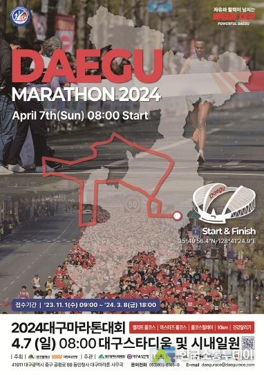 한국소통투데이 관리자 기자 | 대구광역시는 2024대구마라톤대회 마스터즈 부문 참가접수를 오는 11월 1일부터 내년도 3월 8일까지 3만 명 선착순 모집한다.