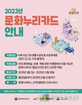 한국소통투데이 관리자 기자 | 대구광역시 남구는 기초생활수급자와 차상위계층을 대상으로 삶의 질 향상과 계층 간 문화 격차 완화를 위해 지원되는 통합문화이용권(문화누리카드)의 발급 및 사용 독려에 나섰다고 1일 밝혔다.
