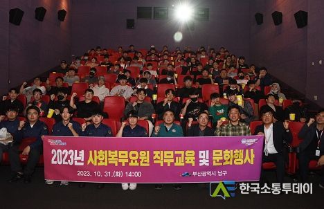 한국소통투데이 관리자 기자 | 부산 남구는 구청 및 관내 사회복지시설에 복무 중인 사회복무요원 80여 명을 대상으로 관내 영화관에서 직무교육 및 문화 행사를 실시했다.