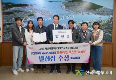 이에 참가한 부산 동구청 세무 연구동아리인〔2030 부산 텍스포(TaxPo)〕는 “자동차세 과세 기준 개편 방안 연구”를 통해 친환경자동차의 과세체계 개선을 통한 세수증대 방안을 연구했고 뛰어난 발표를 통해(발표자 이수혁 주무관) 상금 100만원과 함께 발전상을 수상하게 됐다.