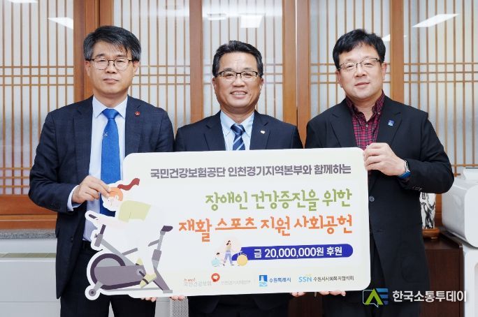 한국소통투데이 관리자 기자 | 국민건강보험공단 인천경기지역본부가 1일 “장애인 자전거 구입에 사용해 달라”며 수원시 사회복지협의회에 2000만 원을 기탁했다.