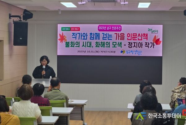 한국소통투데이 관리자 기자 | 대구광역시 남구청은 지난 10월 31일 평생학습관에서 정지아 작가 초청 강연을 시작으로 ‘작가와 함께 걷는 가을 인문산책’의 문을 열었다고 2일 밝혔다.