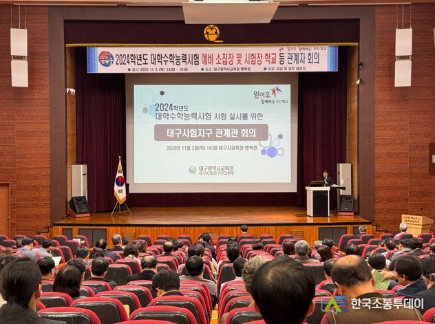 한국소통투데이 관리자 기자 | 대구시교육청은 11월 2일 목요일 14:00 시교육청 행복관에서 수능 예비소집 학교, 수능 시험장 학교 등 관내 중ㆍ고 교감, 교무부장교사, 3학년 부장교사 등 300여 명을 대상으로‘2024학년도 대학수학능력시험 관리ㆍ시행을 위한 관계자 회의’를 개최한다.