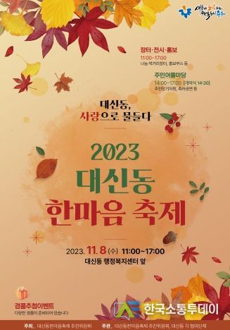 한국소통투데이 관리자 기자 | 대구 중구 대신동행정복지센터는 8일 대신동 행정복지센터 (달구벌대로389길 50) 앞 야외무대에서 주민들이 함께 만들고 즐기는 ‘2023 대신동 한마음 축제’를 개최한다.