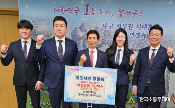 한국소통투데이 관리자 기자 | 대구 달서구는 지난 3일 한국청년회의소, 대구지구청년회의소, 대구여자청년회의소로부터 생리대 50박스(환가액 300만원 상당)를 기탁받았다.