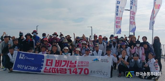 한국소통투데이 관리자 기자 | 부산광역시 남구는 문화관광체육부와 한국관광공사에서 주관하는 코리아둘레길 쉼터 공모사업에 선정되어, 해파랑길과 남파랑길의 시작점인 오륙도와 남파랑길을 홍보하기 위해 6월~11월까지 전문 트레킹 가이드와 함께하는“더 비기닝 남파랑 1470”을 운영하여 총 14회 1,100여 명 참여로 성황리에 마치면서 해단식을 개최했다.