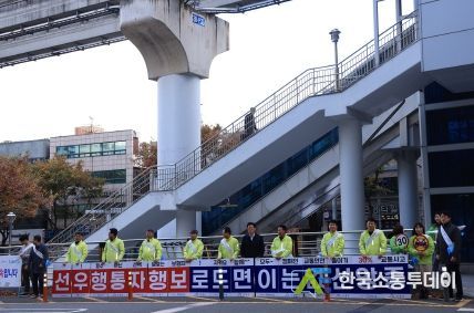 김대권 수성구청장을 비롯해 구청 직원, 교통봉사 단체 보행지킴이 회원 등 30여 명이 현수막과 피켓을 들고 보행자 보호 운전 안전수칙을 홍보했다.