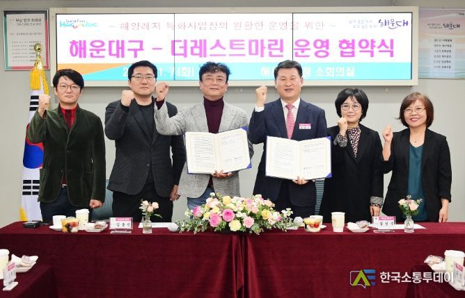 한국소통투데이 관리자 기자 | 해운대구는 7일, 송정 죽도공원에 자리한 해양레저 특화사업장인 ‘더레스트마린’운영사인 ㈜창조씨티와 ‘해양레저 운영 협약’을 체결했다.
