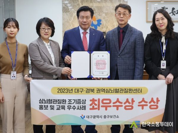 한국소통투데이 관리자 기자 | 대구 중구보건소는 지난 6일 대구·경북 권역 심뇌혈관질환센터가 주최하는 심뇌혈관질환 조기증상 홍보 및 교육 우수사례 공모전에서 ‘최우수상’을 수상했다.