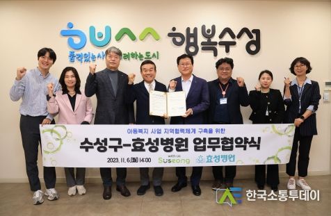 한국소통투데이 관리자 기자 | 대구 수성구는 지난 6일 아이가 행복한 지역사회 조성을 위한 아동복지 협력체계를 구축하기 위해 효성병원과 업무협약을 체결했다.