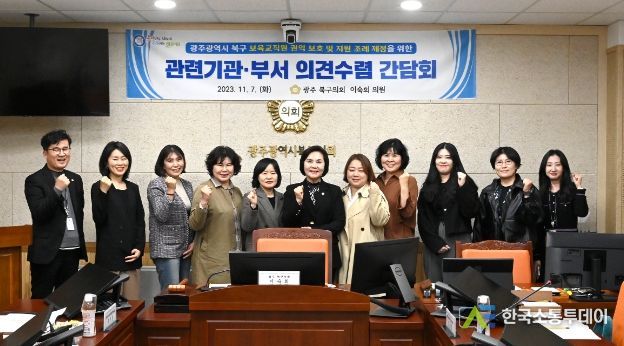 한국소통투데이 관리자 기자 | 광주 북구의회 이숙희 의원(두암1·2·3, 풍향, 문화, 석곡동)은 7일 ‘광주광역시 북구 보육교직원 권익 보호 및 지원에 관한 조례’ 제정을 위한 관계기관 및 관계부서 간담회를 개최했다고 밝혔다.