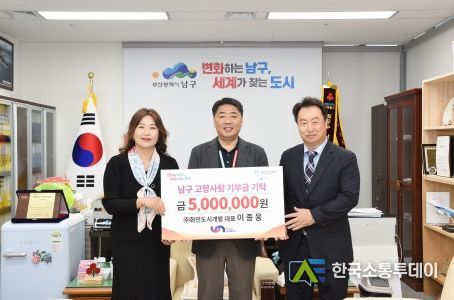 한국소통투데이 관리자 기자 | 지난 6일 부산 남구 고향사랑기부제 제5호 고액 기부자에 ㈜화인도시개발 이종웅 대표가 이름을 올렸다.