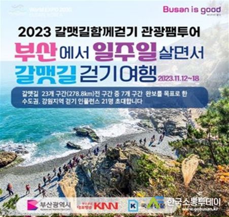한국소통투데이 관리자 기자 | 부산시는 오는 11월 12일부터 11월 18일까지 일주일간 '부산 일주일 살면서 갈맷길 여행하기'라는 콘셉트로 팸투어를 운영한다고 밝혔다.