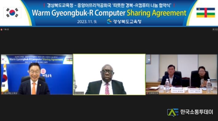 한국소통투데이 관리자 기자 | 임종식 경북교육감은 ‘따뜻한 경북-R컴퓨터 국제 나눔 사업’을 위해 9일 중앙아프리카공화국 페릭스 모루아(Felix MOLOUA) 국무총리 겸 경제기획부 장관과 온라인 나눔 협약식을 했다고 10일 밝혔다.