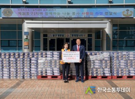 한국소통투데이 관리자 기자 | 국제라이온스협회355-A(부산)지구 제3(동구)지역는 지난 9일, 동구에 함께하는 나눔 봉사 사랑의 라면 1,000상자를 기탁했다.