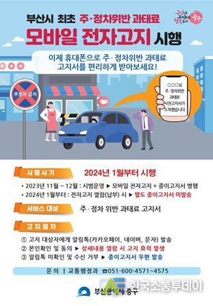 한국소통투데이 관리자 기자 | 부산 중구는 11월부터 주·정차위반과태료 분야에 대한 ‘모바일 전자고지 및 전자결제 서비스’를 시범운영 후 2024년 1월부터 전면 시행한다.