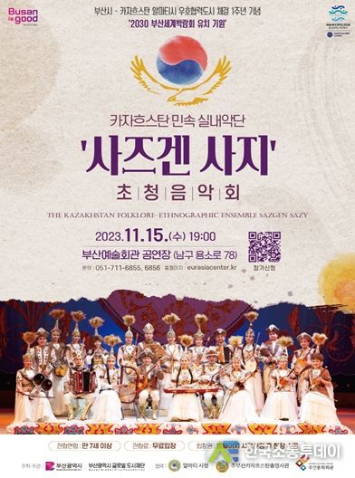 이날 음악회에는 알마티시를 대표하는 카자흐스탄 '사즈겐 사지(Sazgen-Sazy)' 민속 실내악단과 부산시를 대표하는 시립국악관현악단이 함께 출연해 양 도시의 우정과 화합의 무대를 관객들에게 선보일 예정이다.