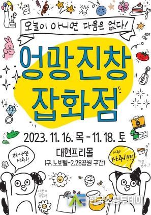 한국소통투데이 관리자 기자 | 대구 중구는 16일부터 18일까지 사흘간 중앙로역 대현프리몰 지하상가(국채보상로 지하 580, I열 1~10호)에서 ‘엉망진창 잡화점’ 프리마켓 행사를 개최한다.