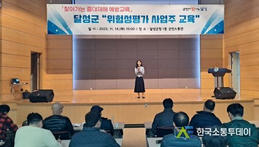 한국소통투데이 관리자 기자 | 달성군은 지난 14일 달성군 군민소통관에서 '찾아가는 중대재해 예방 교육'의 일환으로 달성군 관내 사업주 30여명을 대상으로 ‘위험성평가 사업주 교육’을 실시했다. ‘위험성 평가 사업주 교육’은 안전보건공단 일선기관에서만 시행중인 교육으로 관내 사업주에 대한 교육 편의 제공 및 산업재해 예방 참여도 제고를 목적으로 달성군에서 유치했다.