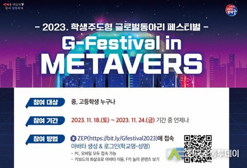 한국소통투데이 관리자 기자 | 대구시교육청은 학생주도형 글로벌 동아리 활동 지원을 통해 학생들이 미래핵심역량을 함양할 수 있도록 11월 18일부터 24일까지‘2023. 학생주도형 글로벌 동아리 페스티벌’을 메타버스 온라인 전시장에서 개최한다.