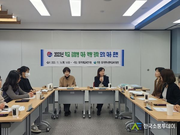 한국소통투데이 관리자 기자 | 대구동부교육지원청은 11월 16일 지역 보건소와 협력하여 교육지원청 감염병 업무담당자, 관내 학교 행정실장 및 보건교사를 대상으로 학교 내 감염병 발생 시 신속하고 효율적으로 대응하기 위해 ‘학교 감염병 대응 역량 강화 모의훈련’을 실시했다.