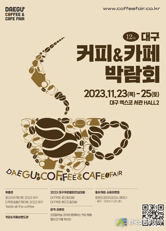 동시 개최되는 제12회 대구 커피·카페 박람회는 대구의 우수한 커피와 카페 산업 인프라를 홍보하고, 업체의 마케팅 및 판로개척 지원을 통해 지역 커피 및 식음료 산업 활성화를 도모한다.