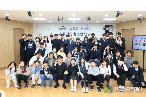 이번 행사는 ‘세대 간 청소년의 만남’을 주제로 2023년을 사는 현재 청소년 세대가 한때는 마찬가지로 청소년이었던 김대권 수성구청장을 만나 꿈과 고민을 나누며 소통하기 위해 마련됐다.