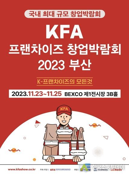 부산시는 오는 23일부터 25일까지 3일간 벡스코 제1전시장에서'KFA 프랜차이즈 창업박람회 2023 부산'이 개최된다고 밝혔다.