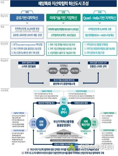 ‘부산지역혁신플랫폼 사업(RIS)’은 지난 2월 정부(교육부) 공모를 거쳐 지난 3월 최종 선정됐으며, 앞으로 5년간 국비 1천499억 원, 지방비 644억 원 등 총 2천143억 원이 투입된다.