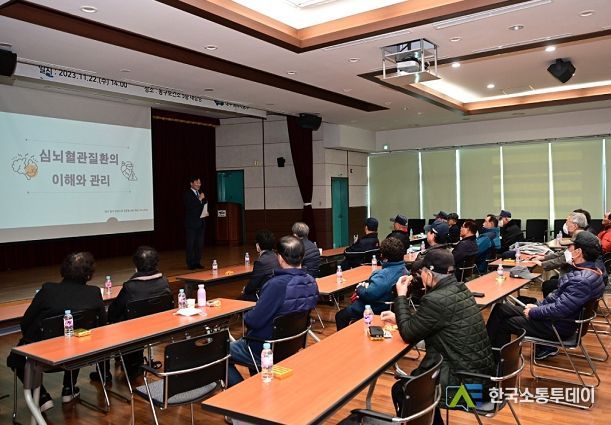 총 2부로 진행됐으며, 1부는 ‘심뇌혈관질환의 이해와 관리’와 ‘치매 예방에 대한 이해’라는 주제로 강의가 열렸으며, 2부는 혈압·혈당 체크 등 인지선별검사로 이루어진 건강체크 시간이 진행됐다.