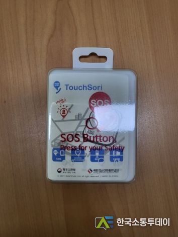 안심 스마트‘터치소리’는 버튼을 누르면 위급상황을 알리는 문자를 112 포함 5명까지 긴급 호출을 할 수 있는 장치이다.