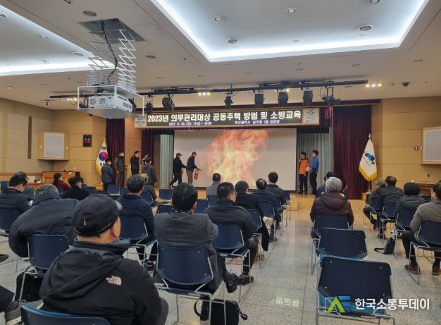 한국소통투데이 관리자 기자 | 부산 남구는 지난 24일 남구청 대강당(1층)에서 의무 관리 대상 공동주택 시설물 안전관리자 및 경비책임자 등 115명을 대상으로‘2023년 의무 관리 대상 공동주택 방범 및 소방교육’을 실시했다.