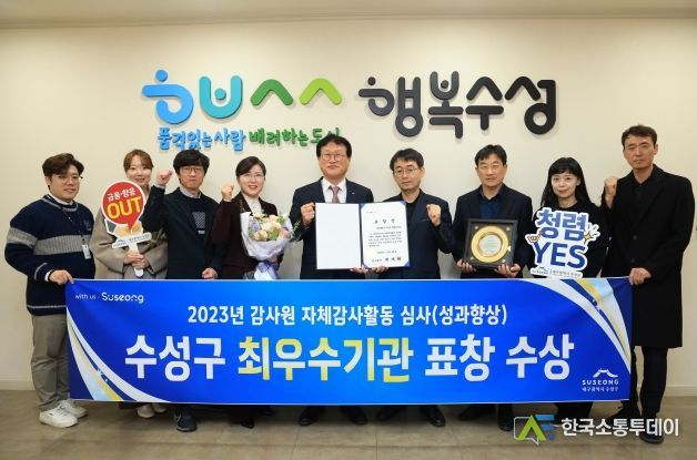 한국소통투데이 관리자 기자 | 대구 수성구는 감사원이 실시한 ‘2023년 자체감사활동 심사’에서 성과향상 최우수 기관으로 선정돼 감사원장 표창을 수상했다고 28일 밝혔다.