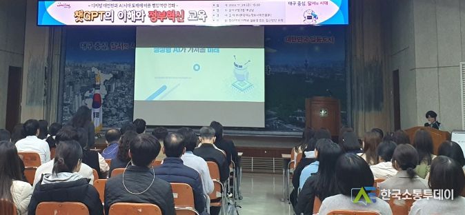 한국소통투데이 관리자 기자 | 대구 달서구는 지난 24일 구청 대강당에서 직원 140여 명을 대상으로 디지털 대전환 도래에 따른 행정역량 강화를 위해 “챗GPT의 이해와 정부혁신 교육”을 실시했다.
