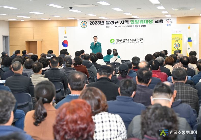 한국소통투데이 관리자 기자 | 달성군은 지난 27일 국가 비상사태 발생 시 지역민방위대의 대처 능력 강화를 위해 9개 읍·면의 이장으로 편성된 지역민방위대장 300여 명을 대상으로 2023년도 지역민방위대장 교육을 실시했다.