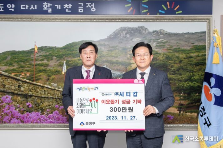 한국소통투데이 관리자 기자 | 부산 금정구는 지난 27일 ㈜시티캅에서 이웃돕기 성금 300만 원을 기탁했다고 밝혔다.