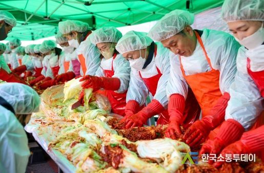 한국소통투데이 관리자 기자 | 대구 중구는 지역주민 화합과 이웃 사랑을 실천하고 나눔 문화 확산을 위해 11월 29일 남산기독교종합사회복지관 주관으로 복지관 주차장에서'2023 사랑의 김장 나눔 행사'를 진행했다.