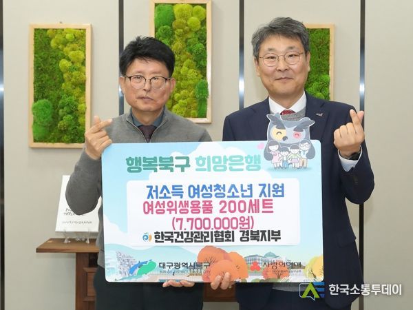 한국소통투데이 관리자 기자 | 한국건강관리협회 경북지부는 11월 29일 관내 저소득 여성 청소년에게 전달해 달라며 여성위생용품 200세트(770만원 상당)를 대구 북구청에 기탁했다.