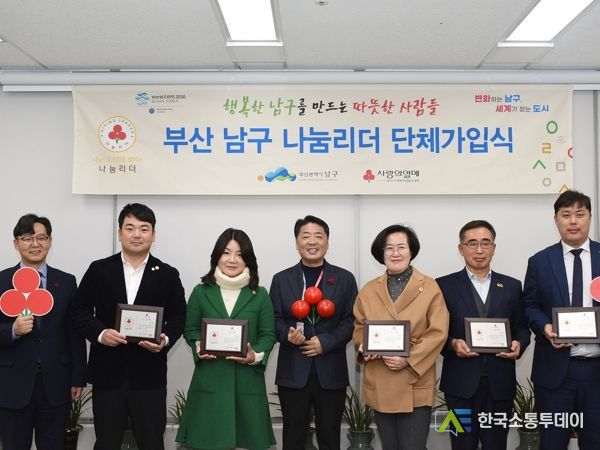 한국소통투데이 관리자 기자 | 부산광역시 남구에서는 지난 29일 오전, 남구청에서 나눔리더 6명 단체 가입식을 진행했다.