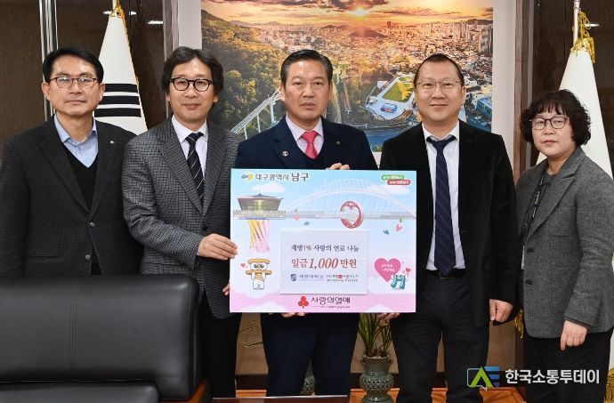 한국소통투데이 관리자 기자 | 대구광역시 남구청은 지난 11월 29일, 계명1% 사랑나누기(대표: 신일희 이사장)에서 한파로 인해 어려움을 겪고 있는 취약계층을 위해 난방유(1,000만원 상당)을 지원했다고 밝혔다.